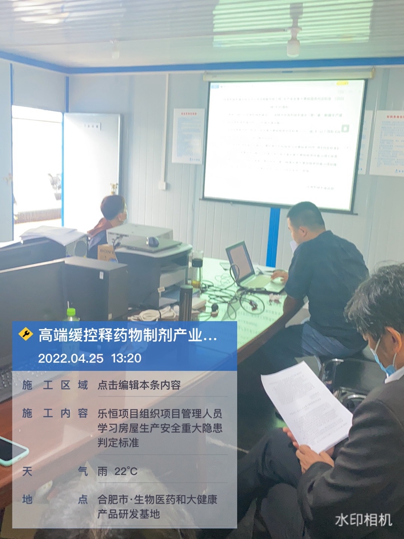 會(huì)后,在總承包項(xiàng)目“高端緩控釋藥物制劑產(chǎn)業(yè)化基地工程”施工現(xiàn)場(chǎng),組織項(xiàng)目部管理人員集中學(xué)習(xí)了《判定標(biāo)準(zhǔn)》。